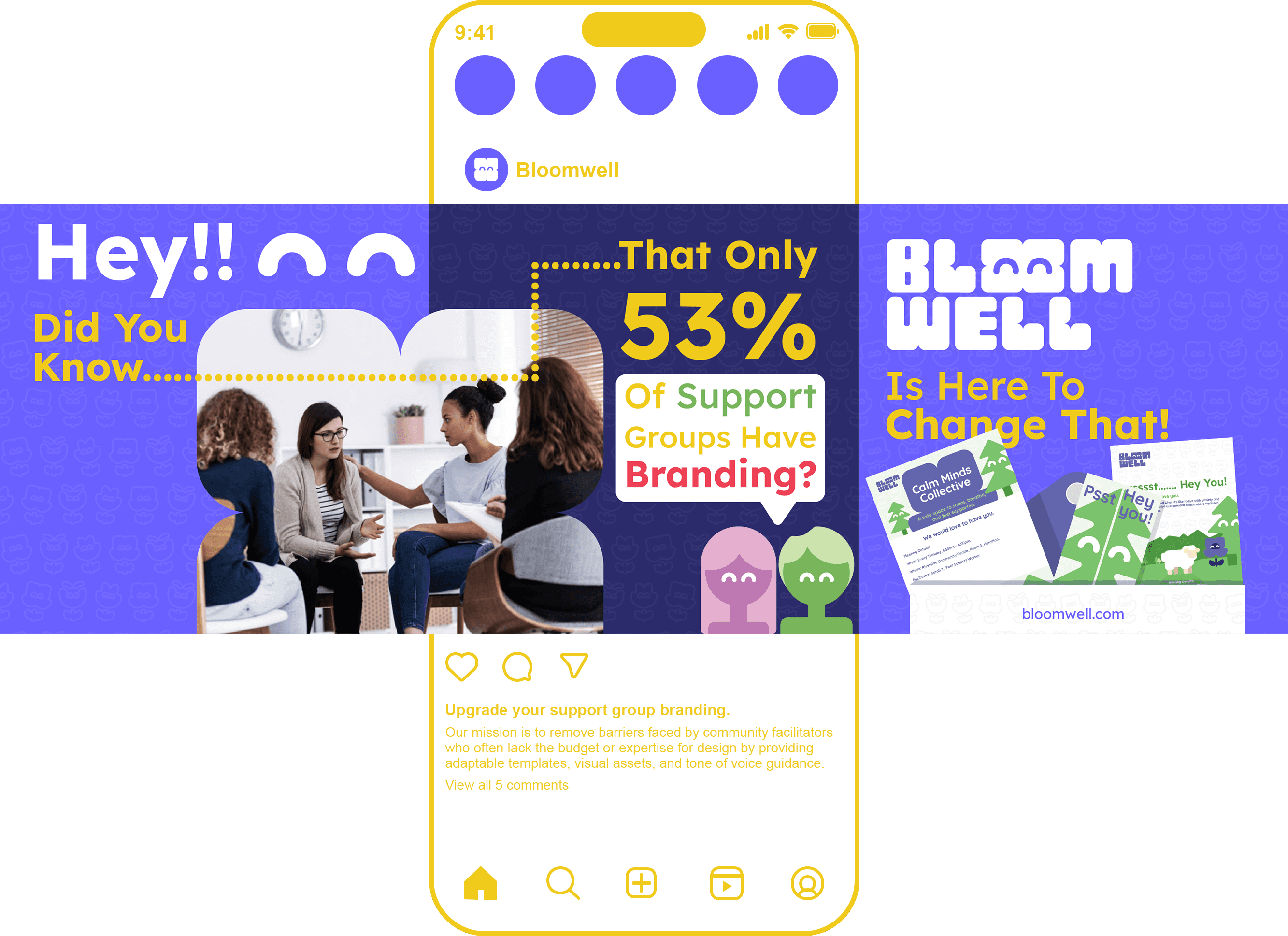 Bloomwell began as a response to this imbalance with a design system built to help peer support groups feel safer, more approachable, and emotionally supportive to those in need.