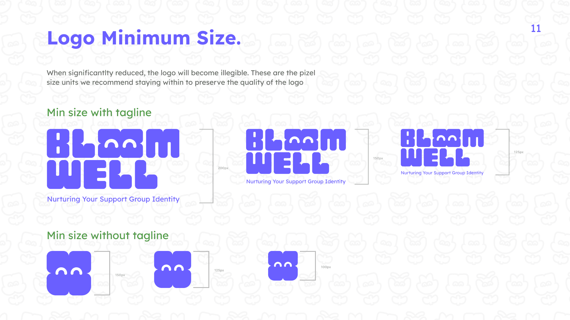 When significantly reduced, the logo will become illegible. These are the pixel size units we recommend staying within to preserve the quality of the logo.